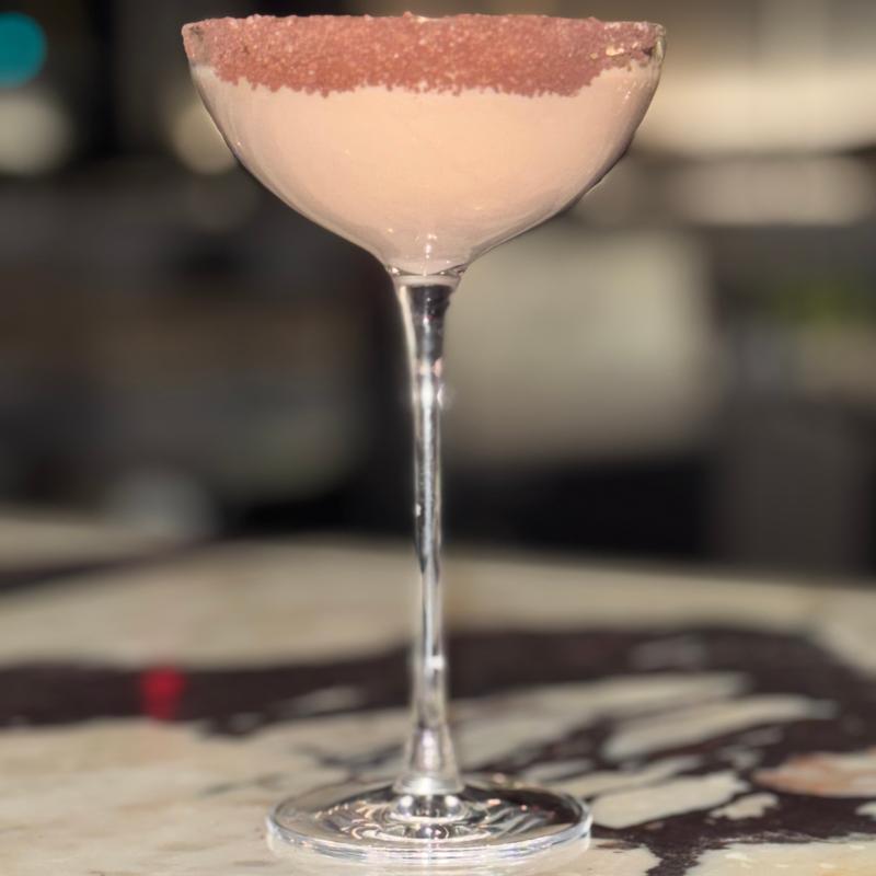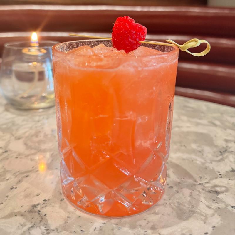 Coconut Water Rum, Sotol, Aperol, Lime, Raspberry, Tiki Bitters